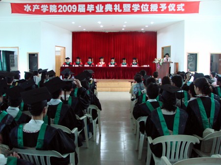 6月26日,水产学院在水新综六楼多功能厅举办2009届毕业生毕业典礼暨学位授予仪式。校党委副书记陈志良、院党政领导、毕业班学生导师、教职员工代表出席了典礼以及全院170多名应届毕业生参加了典礼。典礼由院党委副书记颜素芬主持。