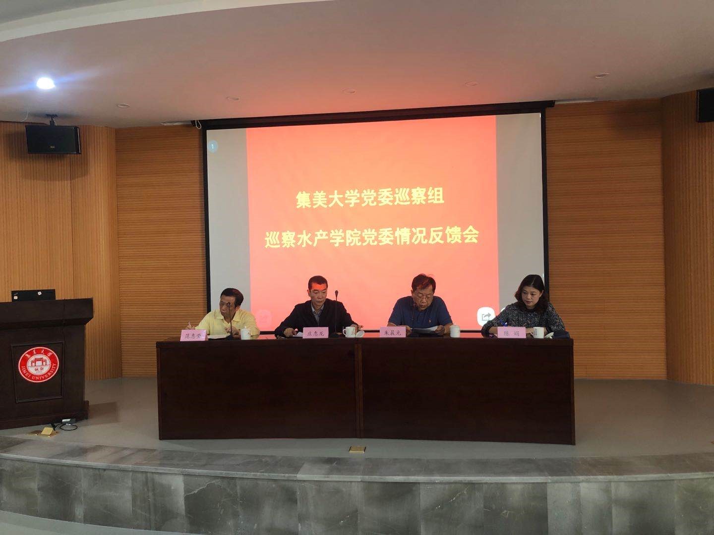 11月25日,校党委巡察组在水产综合楼1楼报告厅召开巡察水产学院党委情况反馈会。校党委巡察组成员,学院领导班子成员、各科室负责人、支部书记、副高职称以上教师等参加了会议。