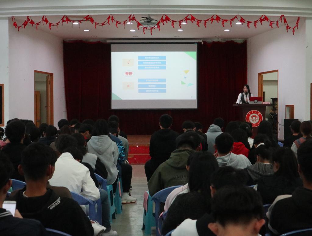 此次讲座由人力资源管理师吴倩老师主讲,吴倩老师结合自己的经历,指出了当代大学生在求职过程中经常遇到的问题,并且给出了建议和解决方法。吴倩老师还从考研、考公、考教师及创业等方面讲述了大学生该如何选择职业方向,规划未来,为今后如何提高就业能力指明了方向。