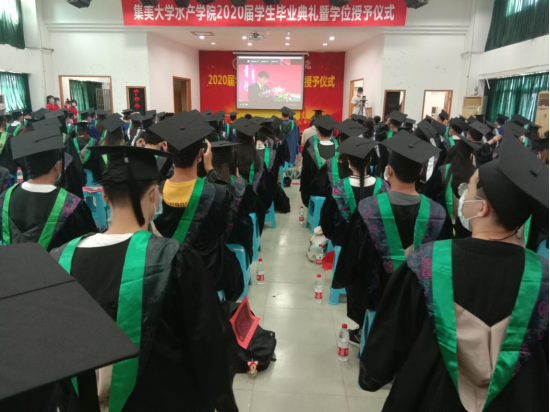 6月23日上午,水产学院在水产综合楼设置集美大学2020届学生毕业典礼暨学位授予仪式分会场。学院领导及本科毕业班班主任、2020届硕士、本科毕业生代表参加典礼。