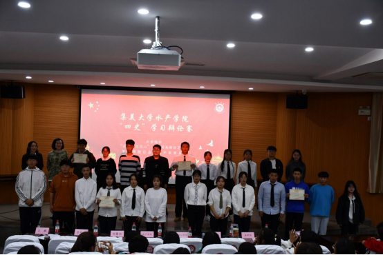来自学院各年级专业的13支参赛队伍进行了激烈的辩论。参赛选手用自己振奋人心、绘声绘色的语言功底和缜密的逻辑思维能力生动地诠释了新时代大学生对党史、新中国史、改革开放史和社会主义发展史的理解与思考。经过角逐,渔科2012班荣获一等奖。