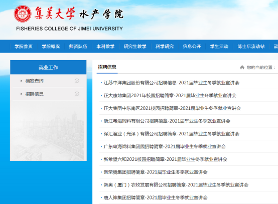 为增进毕业生与行业内单位的了解与交流,做好2021届毕业生就业工作,12月30日,水产学院举办2021届毕业生冬季线上双选会。
