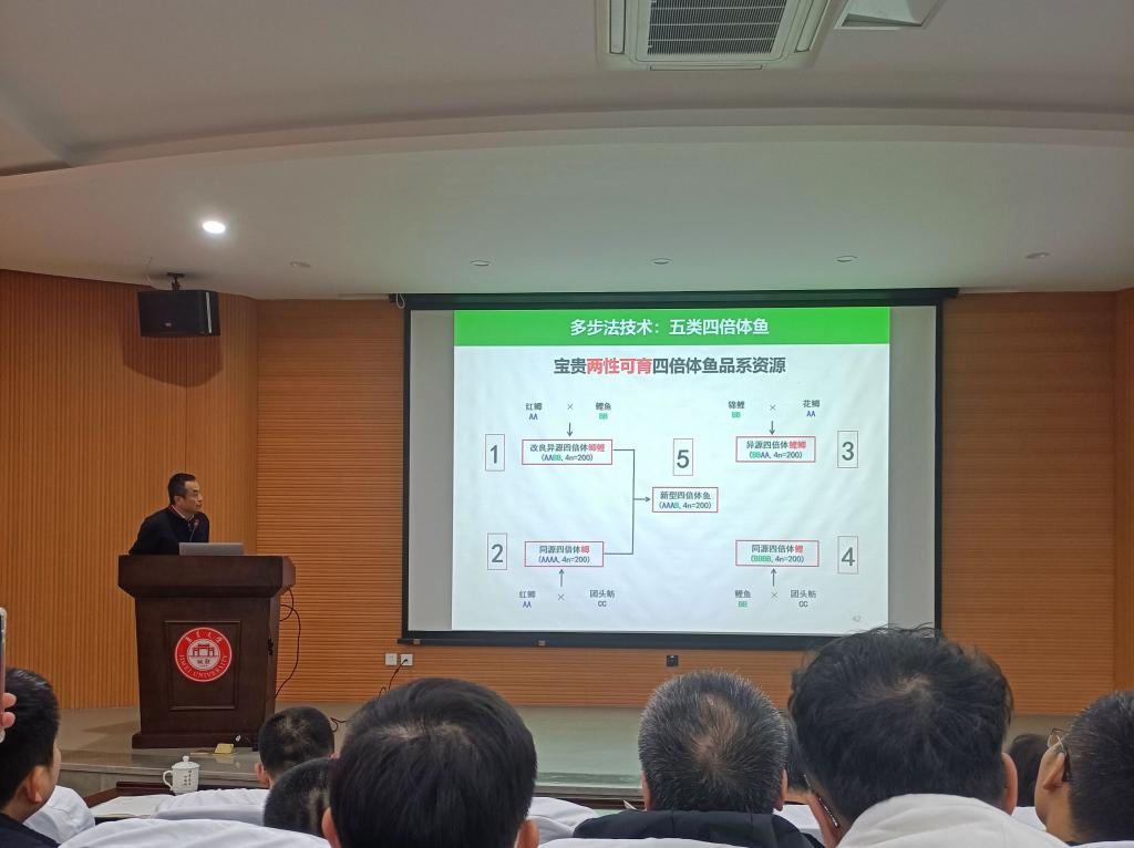 刘院士长期从事鱼类遗传育种研究工作,在鱼类远缘杂交研究领域的理论—技术—产品方面做出了系统的创新成绩,在该研究领域处于领先水平。报告会上,刘院士介绍了我国渔业的发展概况,并结合自身的研究经验,通过研究实例,深入浅出地介绍了鱼类良种选育、远缘杂交等育种技术,阐述了水产新品种的形成途径。最后,结合当前国家政策,提出了生态育种和相关配套技术的发展趋势。
