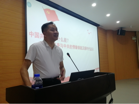 6月9日下午,马克思主义学院院长肖仕平教授为水产学院全体教职工作题为“陈嘉庚与中国共产党的情缘铸就及其新时代启示”党史学习教育讲座,讲座由院党委书记范惠莹主持。