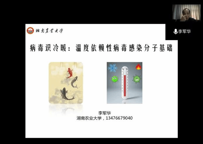 1月11日下午,受水产学院邀请,湖南农业大学李军华博士在腾讯会议上作了题为“病毒识冷暖:温度依赖性病毒感染分子基础”的学术报告。报告会由陈天圣教授主持,学院部分教师及研究生参加了会议。
