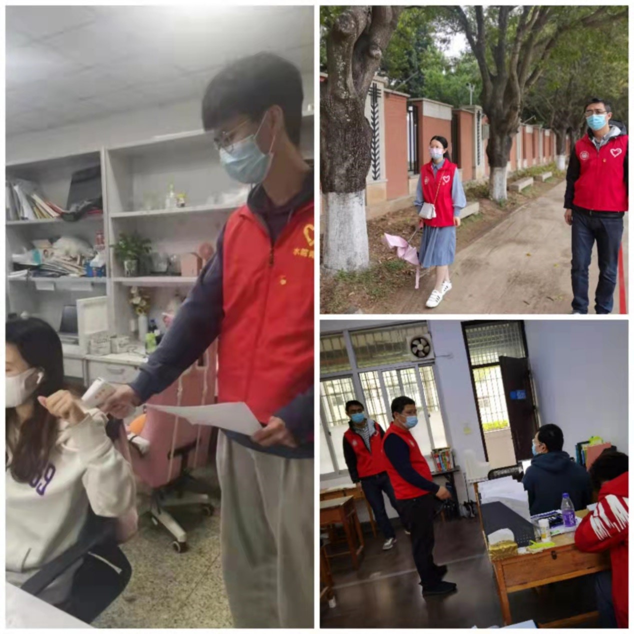 学院师生党员响应号召,迅速反应,坚守岗位,积极参加报名疫情防控志愿服务活动。学院组织1支教工党员疫情防控先锋队,2支学生党员疫情防控突击队,共161名成员。师生党员积极参与学院大门师生进校信息查核、食堂秩序维护、体温监测、核酸检测、校园安全巡逻等志愿服务活动;定期检查院区内教室、实验室、宿舍、围墙等重点场所疫情防控工作落实情况,及时向带班领导反馈报告;随时待命执行学院安排的临时、突发的疫情防控任务。