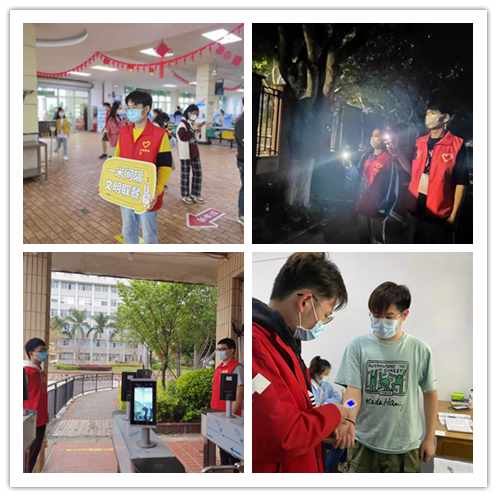 教工党员先锋队由自愿报名的党员教工组成,以落实防控要求,做好各项工作检查督导,加强对学生宿舍线上学习的督查和帮扶,协助学院做好因病因事外出闭环管理为主要任务;学生党员突击队帮助学生消杀、领取快递,协助老师完成疫情防控相关工作;校园巡逻队伍负责校园及周边围墙的巡逻,防止学生翻墙行为,劝导学生减少点外卖,劝导学生不聚集;防控志愿服务队伍做好校门和食堂进出人员的体温检测,协助检查出入证件,督导学生按要求排队和按要求就餐;教室督导队伍负责教室自修学生的体温检测和人数把控;实验室安全队伍负责实验室人员的体温检测和隐患排查;心理援助队伍通过电话接待师生心理咨询,答疑解惑,为师生提供心理援助。