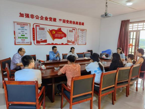 水产学院领导一贯重视实践实习工作,为了加强对实习的组织管理和对学生的关爱,深化校企合作,2022年5月19日,学院党委书记黄海宏、副院长黄文树、姜永华、陈天圣和水生生物增养殖实习带队老师一行,对2019级水产养殖学专业的校外实习进行走访了解,并与公司负责人及部分实习同学进行座谈交流。