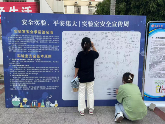 实验室安全宣传周活动在6月20日至26日举办,线上和线下方式分步进行。以公众号推文、实验室安全微摄影大赛为主的线上形式,介绍实验室安全宣传周活动参与方式,活动内容以及活动奖品,宣传实验室安全的重要性,营造良好的实验室安全氛围。线下活动地点在水产学院第九餐厅门口,院研会通过招募志愿者、张贴实验室安全海报、设置师生签名墙、发放实验室安全手册、进行实验室安全知识竞赛等实验室安全线下活动普及实验室安全知识,介绍实验室设备、药品、耗材的安全使用,分享实验室安全建设心得,同时为活动获奖同学发放奖品。