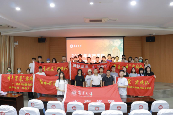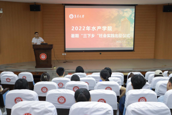 7月1日下午,水产学院2022年暑期“三下乡”社会实践出征仪式在水新综一楼报告厅隆重举行。院党委副书记黄庆胜老师、团委书记张艳娇以及各实践队指导老师、队员出席出征仪式。