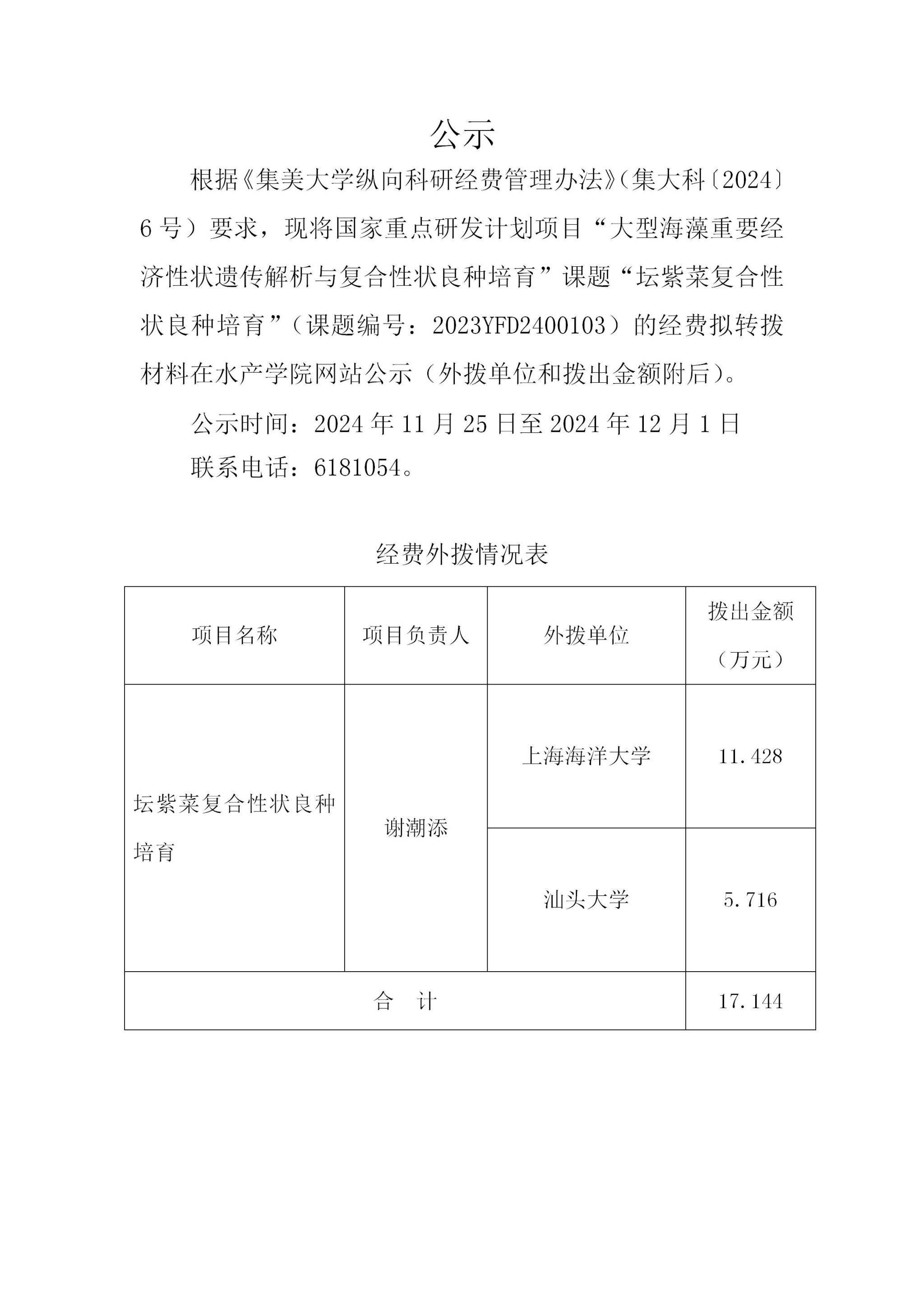 上一篇:”水产养殖尾水处理关键技术与装备研发及应用”项目科研经费外拨公示(第一批)