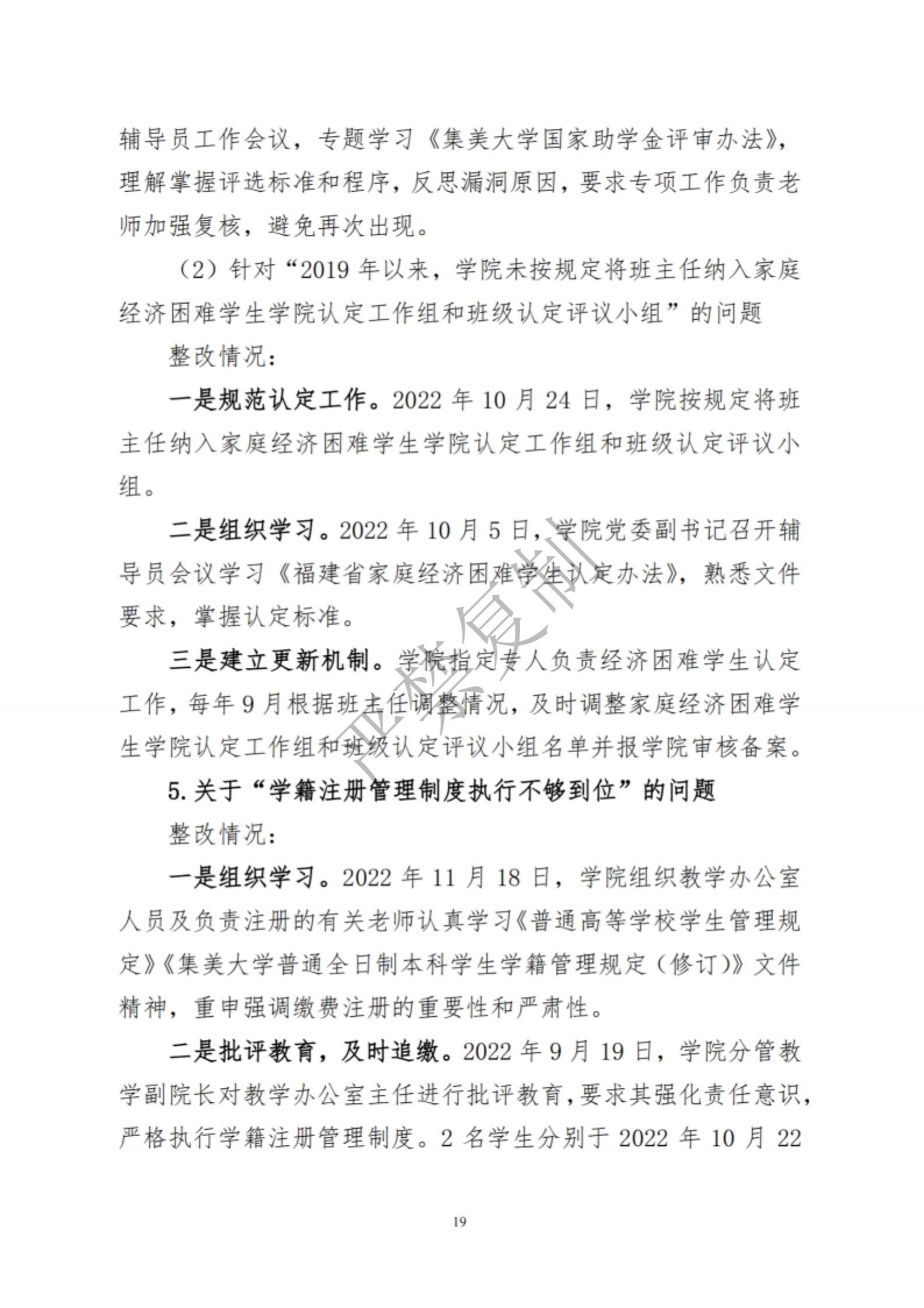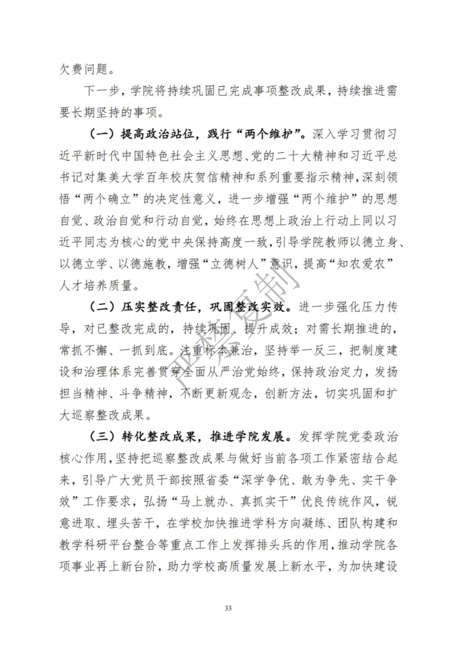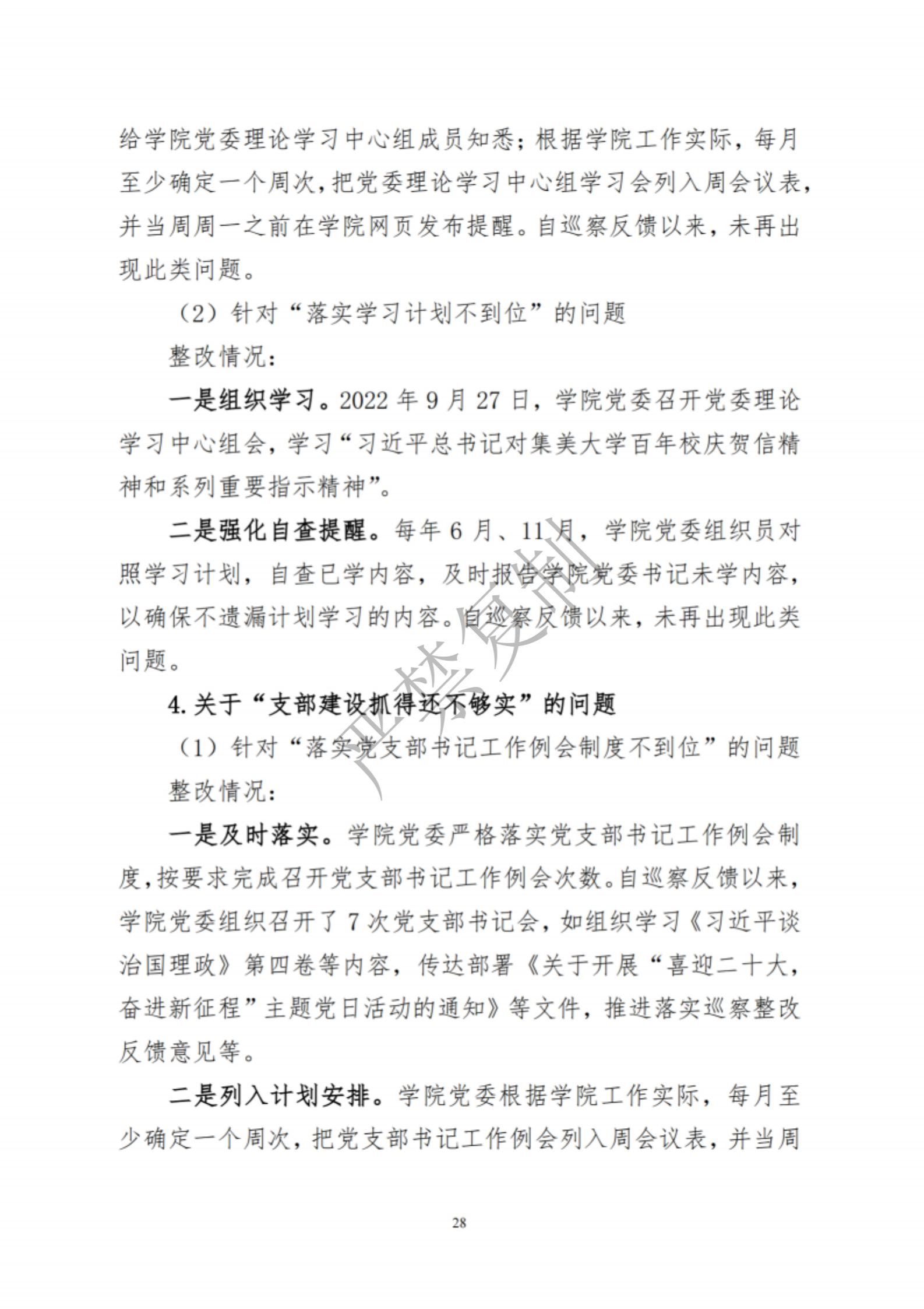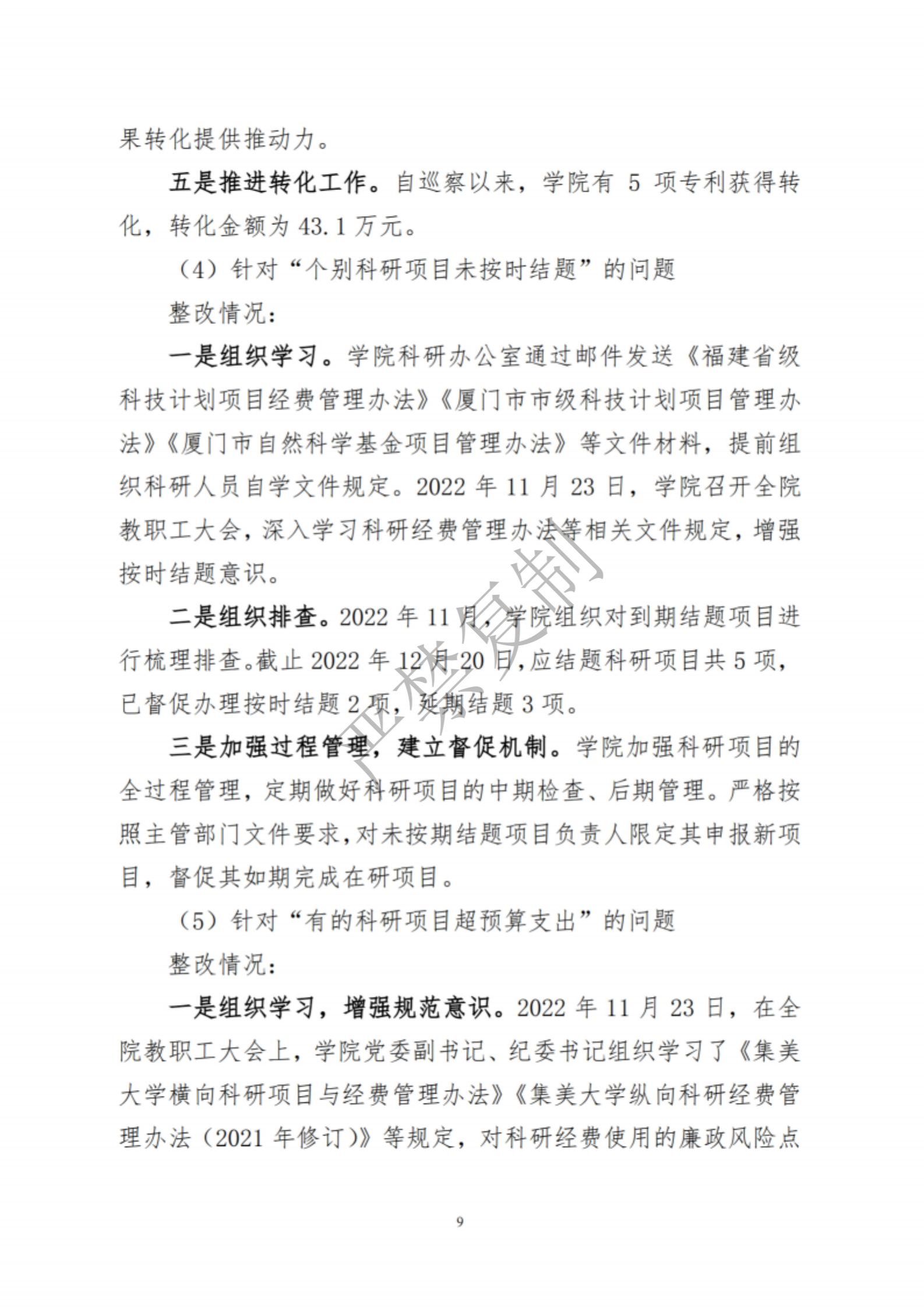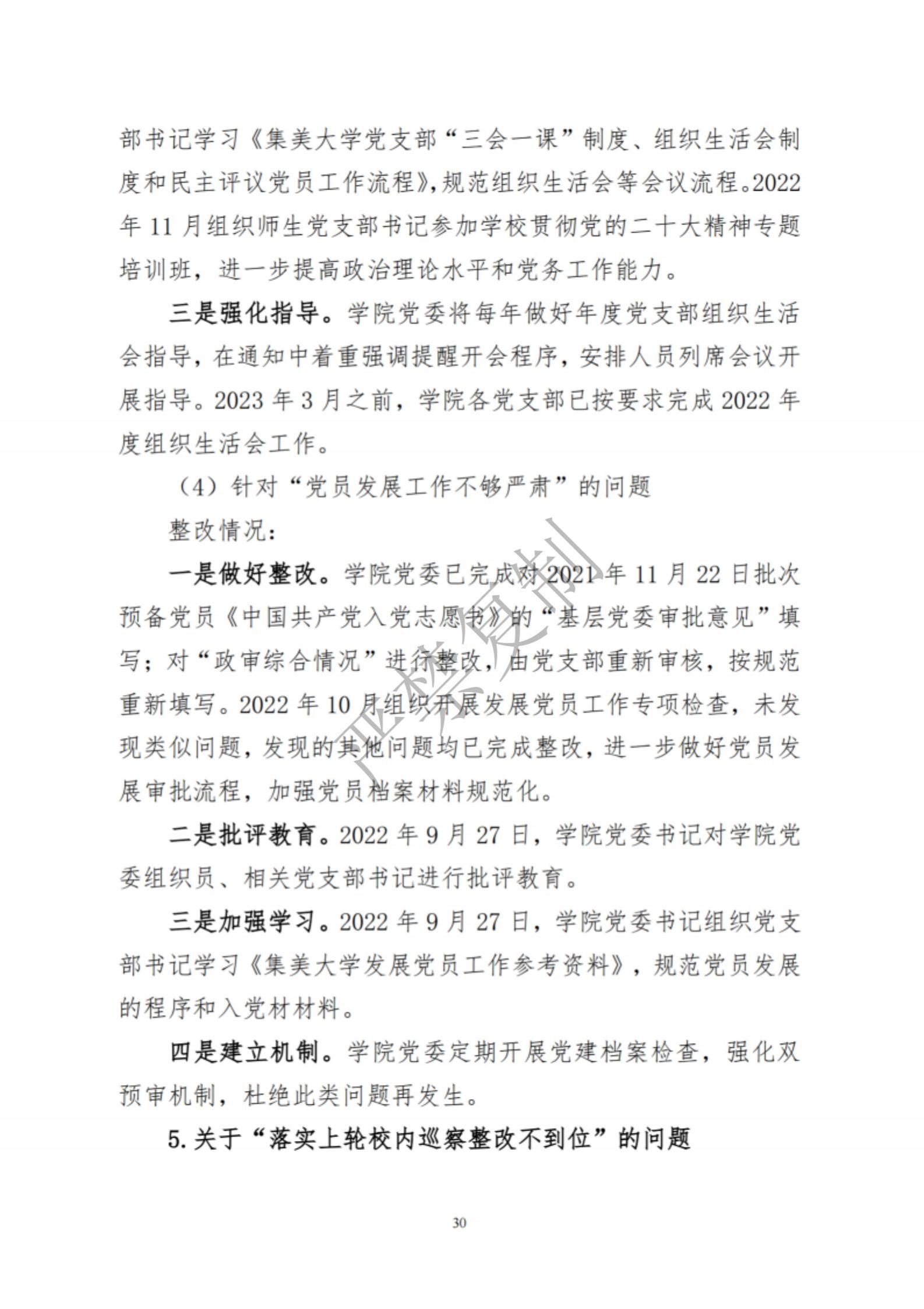 中共集美大学水产学院委员会关于巡察反馈意见集中整改进展情况的通报