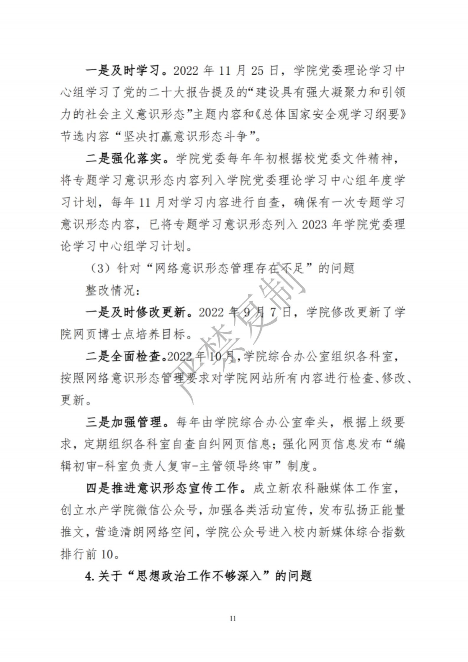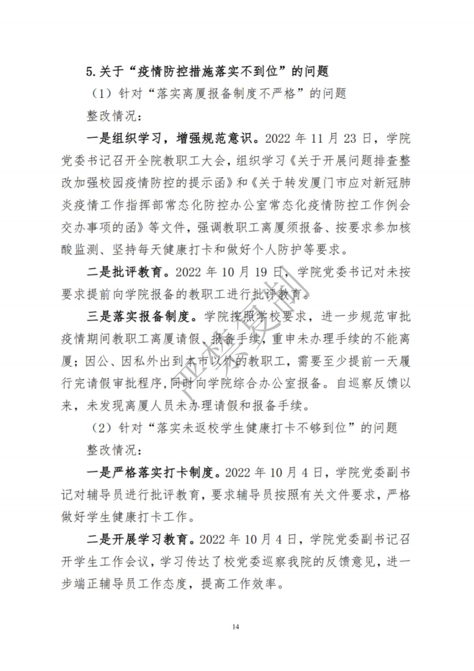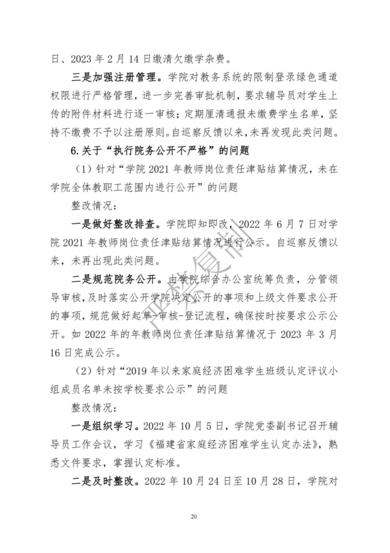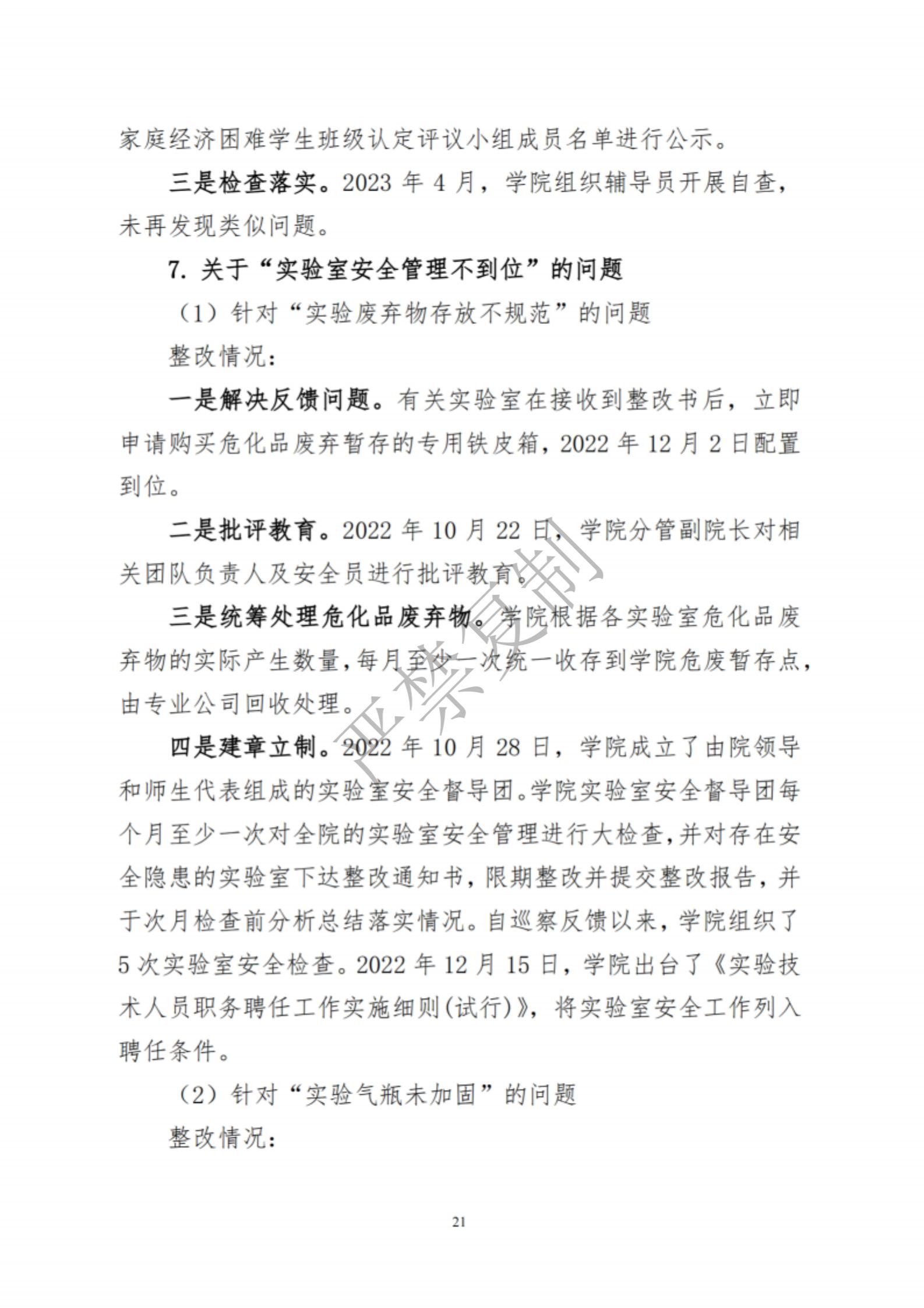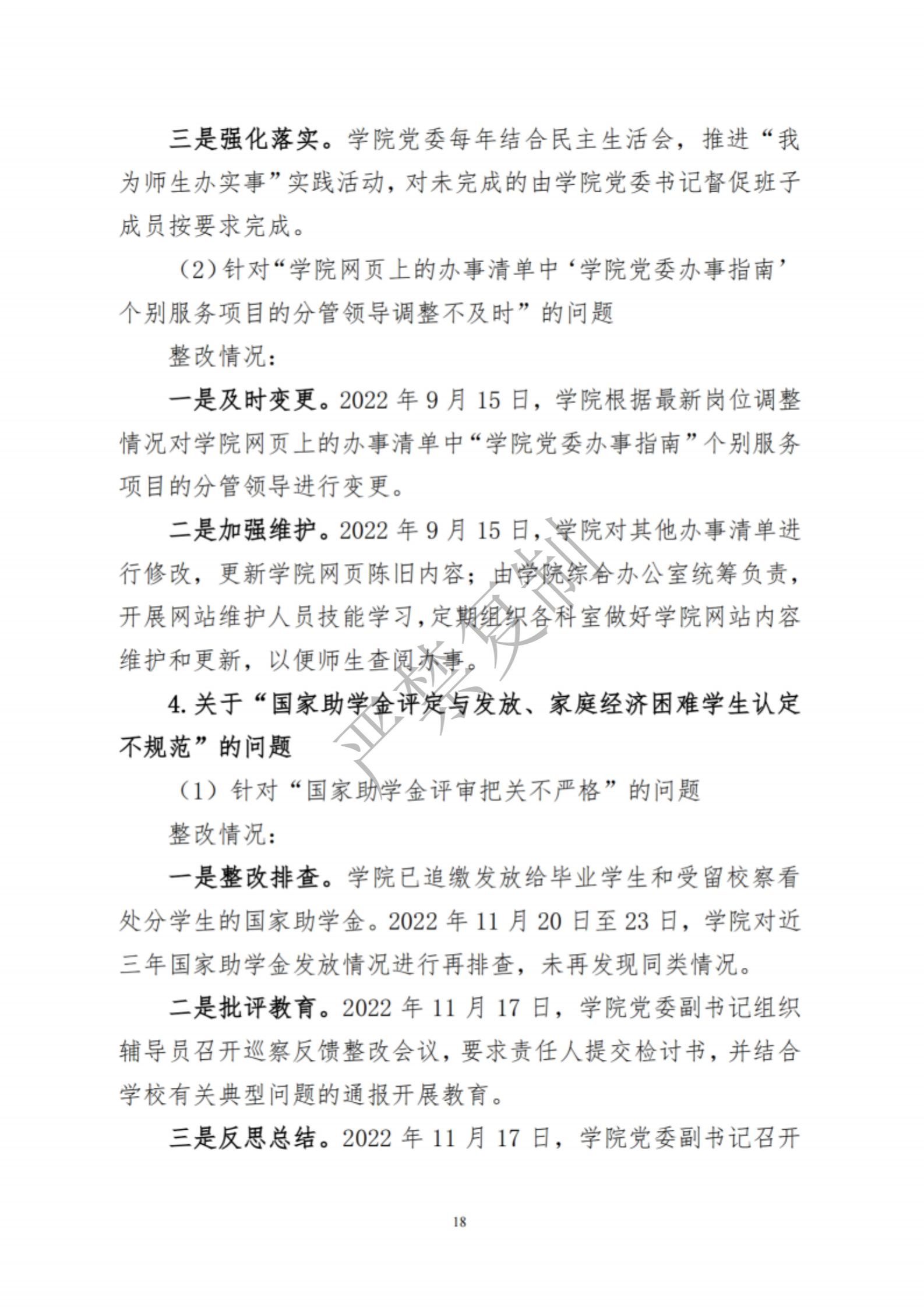 中共集美大学水产学院委员会关于巡察反馈意见集中整改进展情况的通报