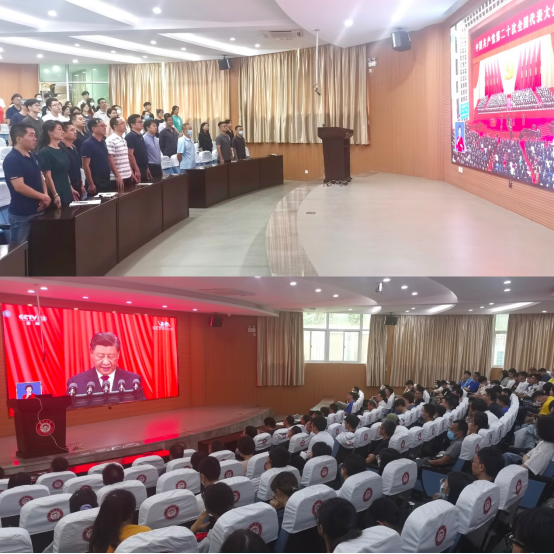 10月16日,中国共产党第二十次全国代表大会在北京开幕。水产学院党委组织全体院领导、党员教职工、学生代表在水产综合楼一楼报告厅集中观看开幕会直播,其他未到场师生通过电视、网络等多种方式在会议室、宿舍等地方收听收看开幕会直播。大家在听取报告后,内心深受鼓舞,倍感振奋,纷纷畅谈感想体会。