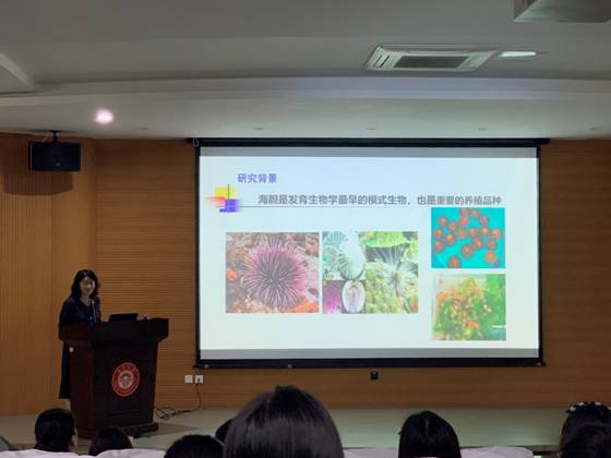 6月25日下午,大连海洋大学丁君研究员来我院进行学术交流,并于水产综合楼一楼学术报告厅作了题为“我国经济棘皮动物种业科技研究进展”的学术报告。报告会由水产学院副院长张春晓教授主持,学院师生近百人参加了报告会。